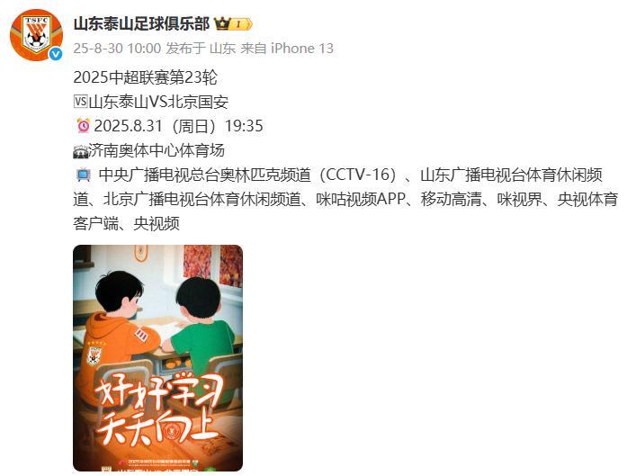 本场赛前,山东泰山俱乐部官方曾发布官方海报,主题为《好好学习,天天向上》,海报中身着橙色衣服的小同学为身着绿衣服的同学辅导,绿衣服同学的抽屉里还被塞了三个橙色的球。赛后再看,这张海报反而别有一番意味。